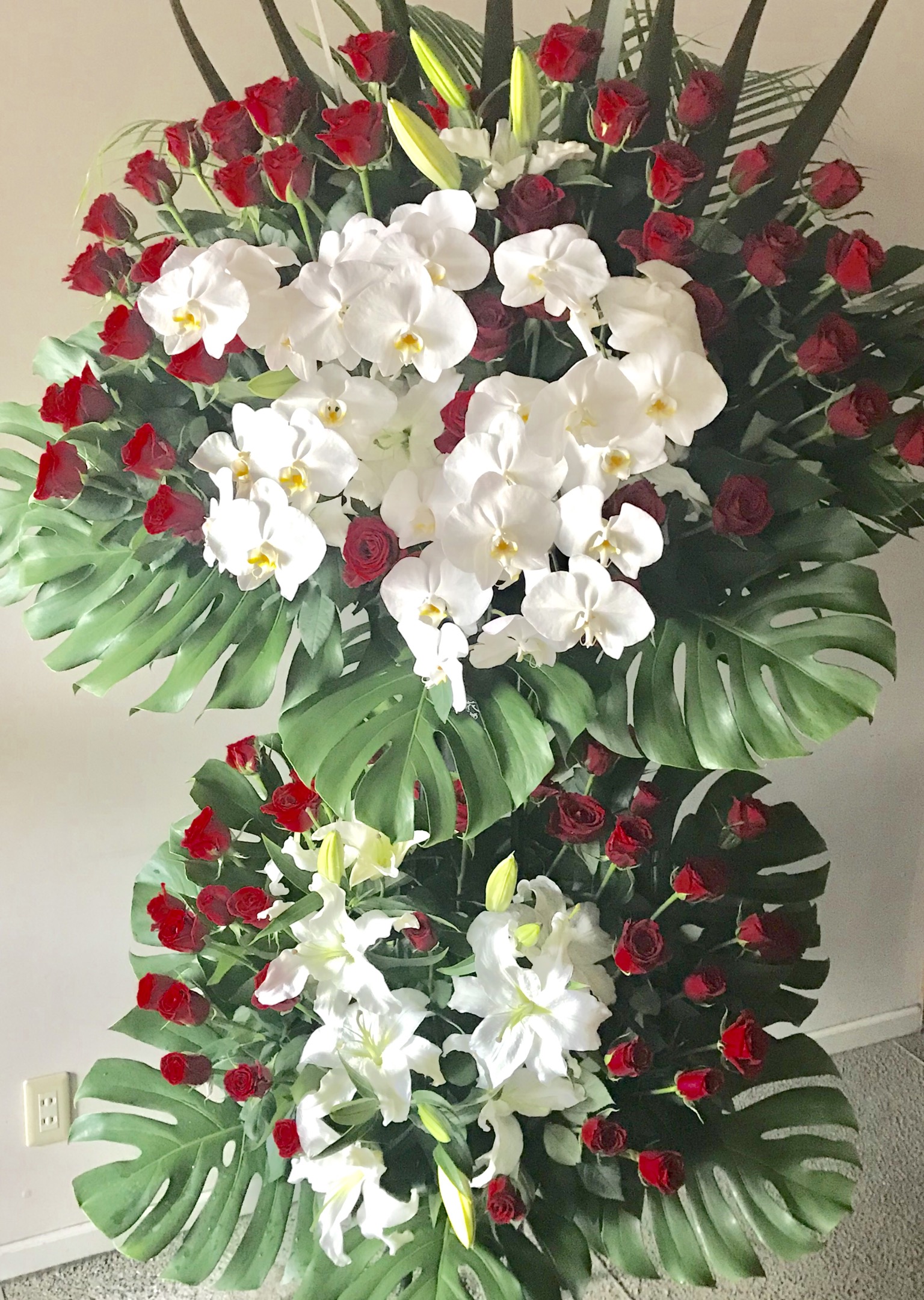さて、たまーーーーに超豪華なご注文が入ったりしますが、先日は超豪華なスタンド花で。旭川市中心部の繁華街にお届けいたしました♡