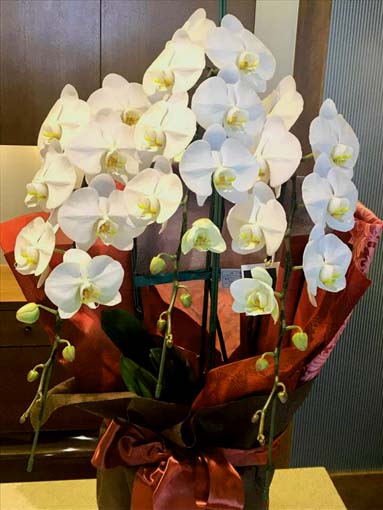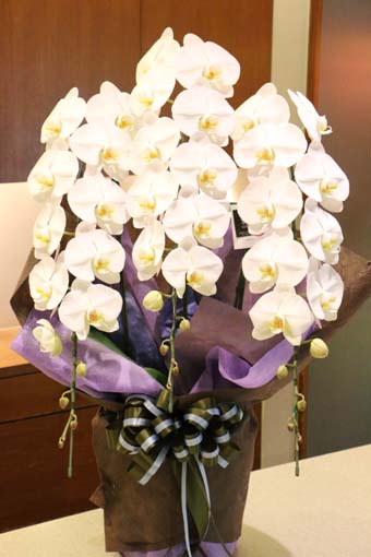 白のコチョウランはお供え用で贈る事は全然問題ないです。ピンクでも寂しくなくて、ちょっと明るくていいねと思われる方が多いです。