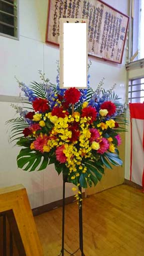 開校120周年のお祝いに、隣町鷹栖町の学校へお届けしたスタンド花。
